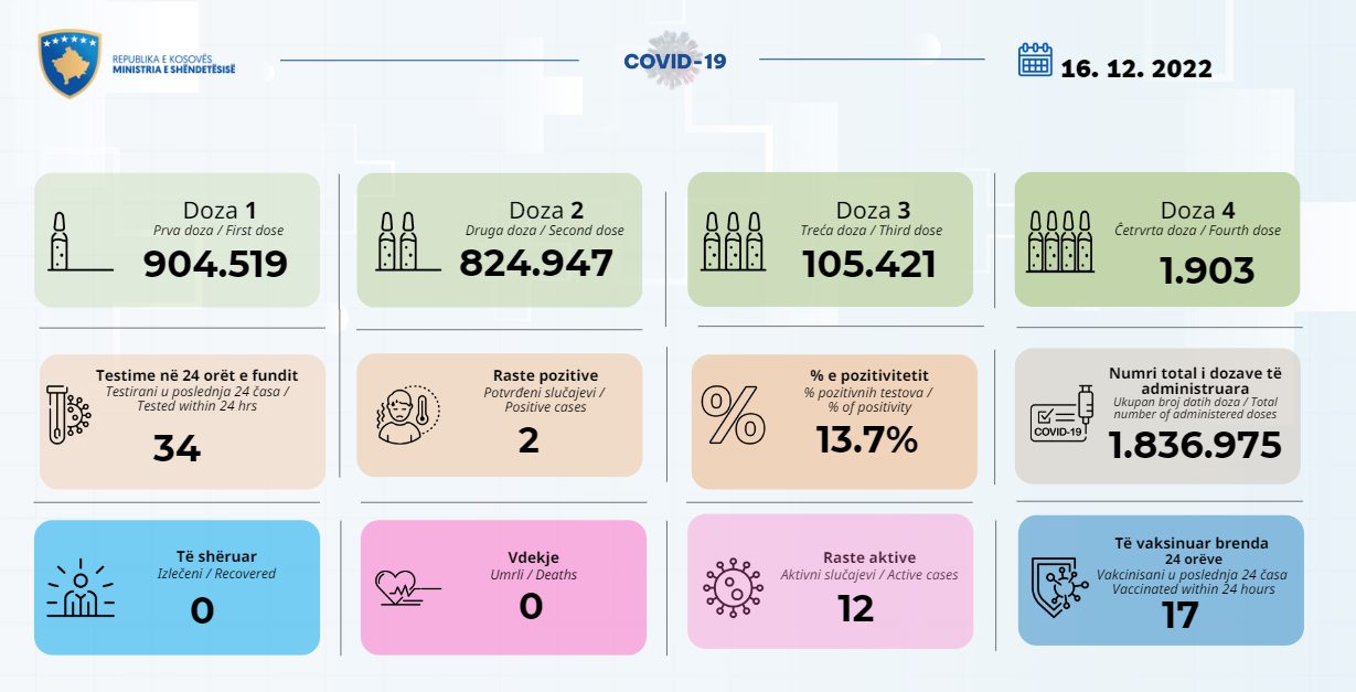 Gjatë 24 orëve të fundit nuk u shënua asnjë viktimë dhe asnjë rast shërimi.