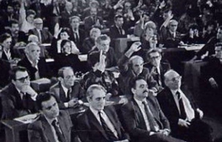 Parlamenti i Kosovës ishte i rrethuar me tanke dhe forca ushtarake, dhe nën një shtetrrethim të ashpër, Serbia dhunshëm ia hoqi Kosovës autonominë.