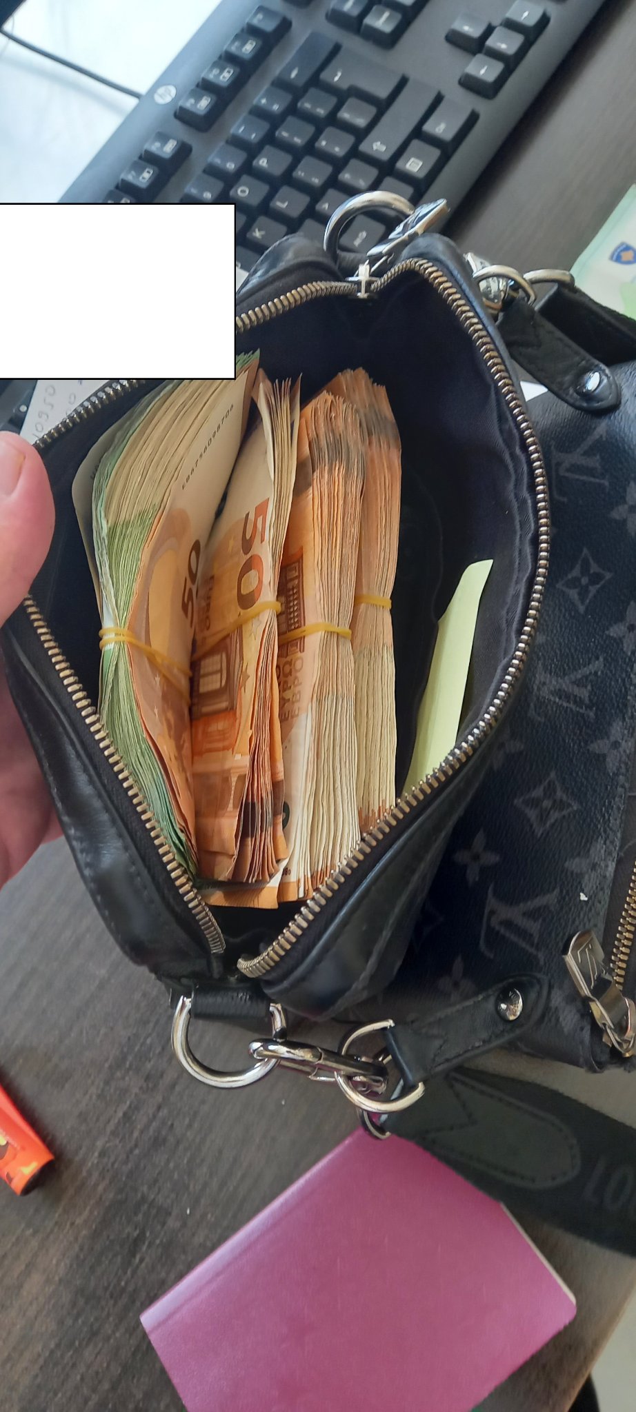 “Gjatë kontrolleve rutinore oficerët doganore kanë selektuar për kontroll një automjet me targa të Republikës së Kosovës. Pas ndalimit të automjetit vozitësi dhe pasagjerët kanë deklaruar se nuk posedojn asgjë. Automjeti është dërguar në vijën e dytë të kontrollit nën asistimin e policisë ku pas ekzaminimit fizik tek njëri nga pasagjerët në trup (saktësishtë në qantën e krahut) janë gjetur 18250.00 euro të padeklaruara. Pala përgjegjëse është gjobitur me 25% të vlerës totale, konform nenit 33.5 te KDAK-es, pjesa tjetër është ndaluar deri në përfundimin e procedurave hetimore”, thuhet në njoftim.