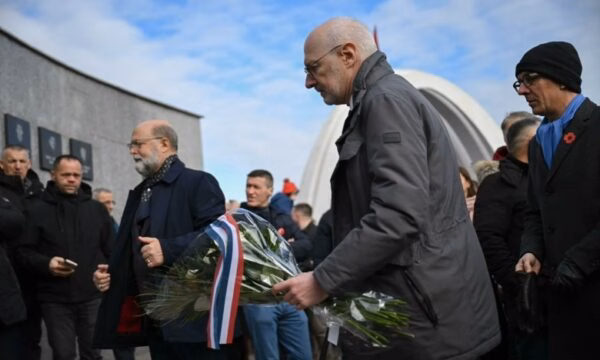 Ambasadori i Francës në Kosovë, Olivier Guerot, ka vendosur lule në Reçak për të nderuar 45 civilët shqiptarë të vrarë në masakrën e ndodhur 27 vjet më parë.