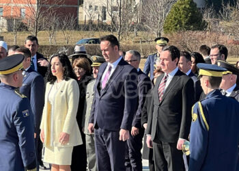 Presidentja e Kosovës Vjosa Osmani, kryeparlamentari Glauk Konjufca, kryeministri, Albin Kurti, presidenti i Shqipërisë, Bajram Begaj dhe delegacionet nga të...
