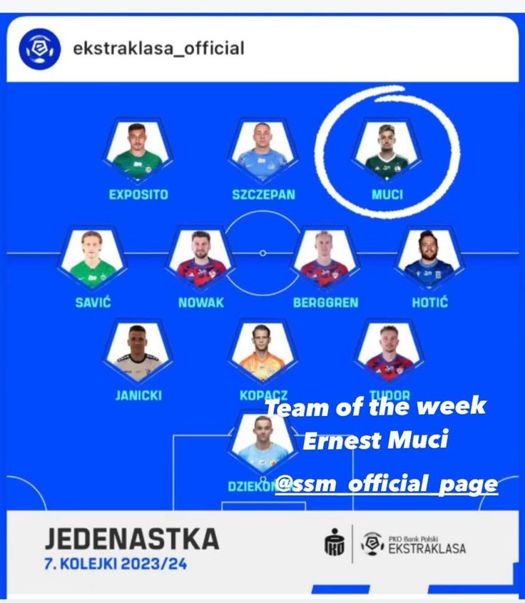 Ernest Muçi në formacionin e javës në elitën e futbollit polak. Sulmuesi i kombëtares shqiptar, autor i një dygolëshi që i dha fitoren Legias së Varshavës në përballjen e javës së shtatë të Ekstraklasses, ka marrë vlerësime për paraqitjen e tij, duke u përfshirë në 11-shen më të mirë.