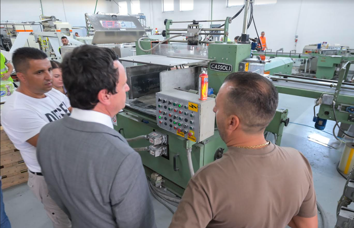 Kurti që në këtë vizitë ishte i shoqëruar nga ministri i Financave, Punës dhe Transfereve, Hekuran Murati, foli edhe për punën që bëhet në këtë kompani.