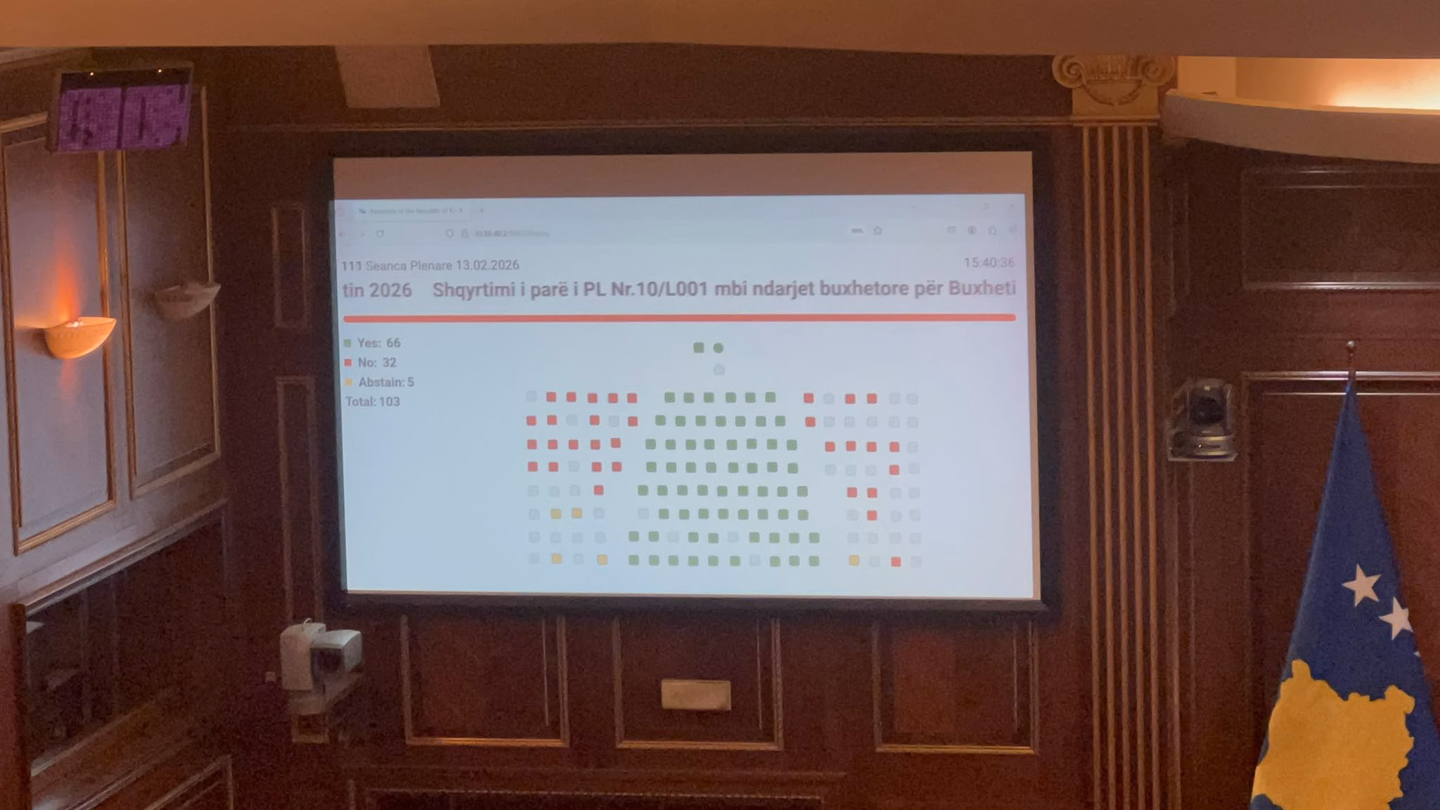 66 deputetë votuan për, 32 kundër dhe 5 abstenuan.