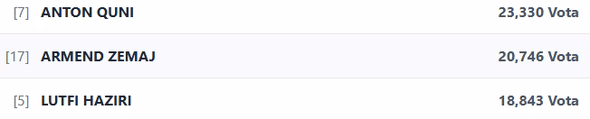 Lista e 10 kandidatëve më të votuar nga LVV