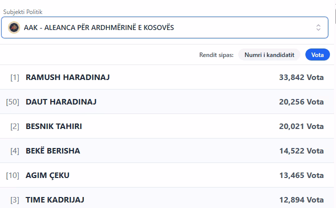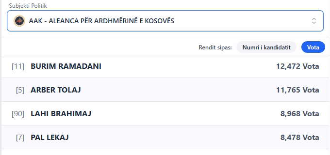 Lista e 10 kandidatëve më të votuar nga AAK