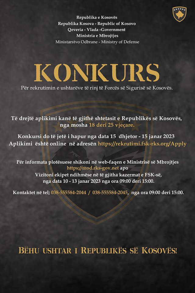 Konkursi është i hapur nga data 15 dhjetor deri më 15 janar 2023. /Teve1.info/