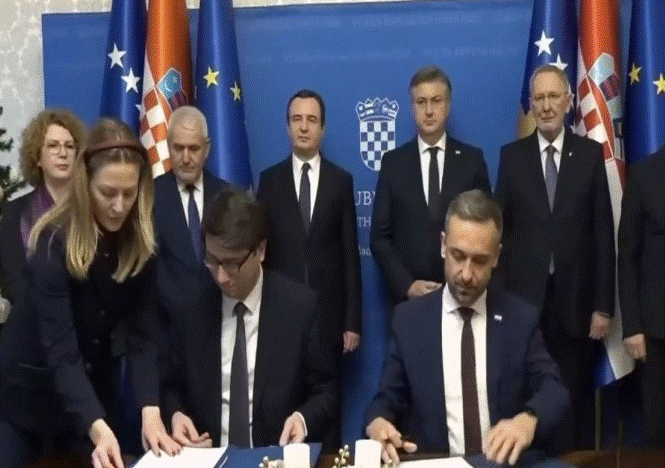 Tutje, bëhet e ditur se marrëveshja midis Qeverisë së Republikës së Kroacisë dhe Qeverisë së Republikës së Kosovës për bashkëpunim në mbrojtjen nga fatkeqësitë natyrore, teknike dhe teknologjike, u nënshkrua nga Davor Bozhinoviq, zëvendëskryeministër dhe Ministër i Brendshëm i Republikës së Kroacisë, dhe Xhelal Sveçla, ministër i Brendshëm i Republikës së Kosovës.