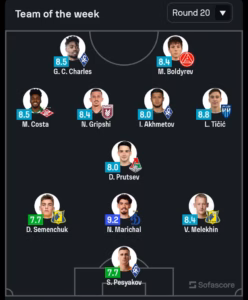 Në fund u vlerësua edhe si lojtari më i mirë i ndeshjes. Por ky nuk është vlerësimi i vetëm për atë. Ai është zgjedhur në formacionin e javës në Premier Ligën ruse. Gripshi është vlerësuar me notën 8.4 nga SofaScore.