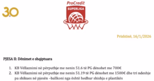 Për incidentin në Gjakovë dhe ofendimet e tifozëve, KB Vëllaznimi është dënuar me gjobë prej 2200 euro në total dhe tre ndeshje pa shikues në pjesën e balkonit, nga ku është hedhur shishja e plastikës.