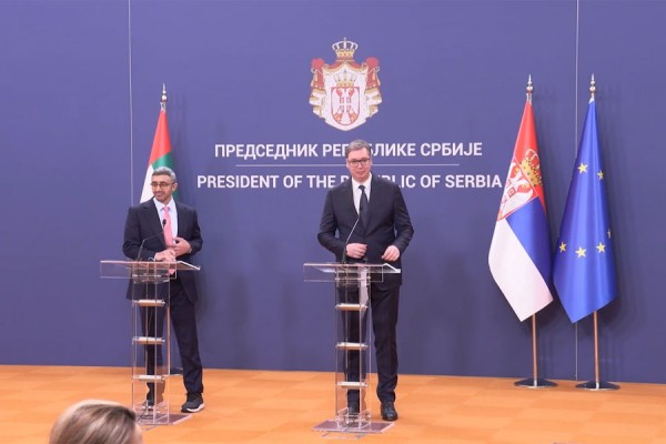 “Vendi ynë përshëndeti marrëveshjen për normalizimin e marrëdhënieve ndërmjet Serbisë dhe Kosovës, duke uruar që të gjitha vendet e Ballkanit të përfitojnë, në tejkalimin e konflikteve dhe hapjen e një faqeje të re dhe për vendosjen e bashkëpunimit rajonal. Vendi ynë beson gjithashtu në rëndësinë e përpjekjeve të mëtejshme për të arritur një rezultat që do të kënaqë të gjitha palët, ne jemi të sigurt se kjo detyrë kërkon guxim dhe lidership, dhe jemi gjithashtu të bindur se nën udhëheqjen e Presidentit Vuçiç, është e mundur të arrihet një ndryshim cilësor në marrëdhëniet ndërmjet Serbisë dhe Kosovës, që do të shtynte që Emiratet e Bashkuara Arabe dhe vendet e tjera të investonin në të dy vendet.”, është shprehur ai.